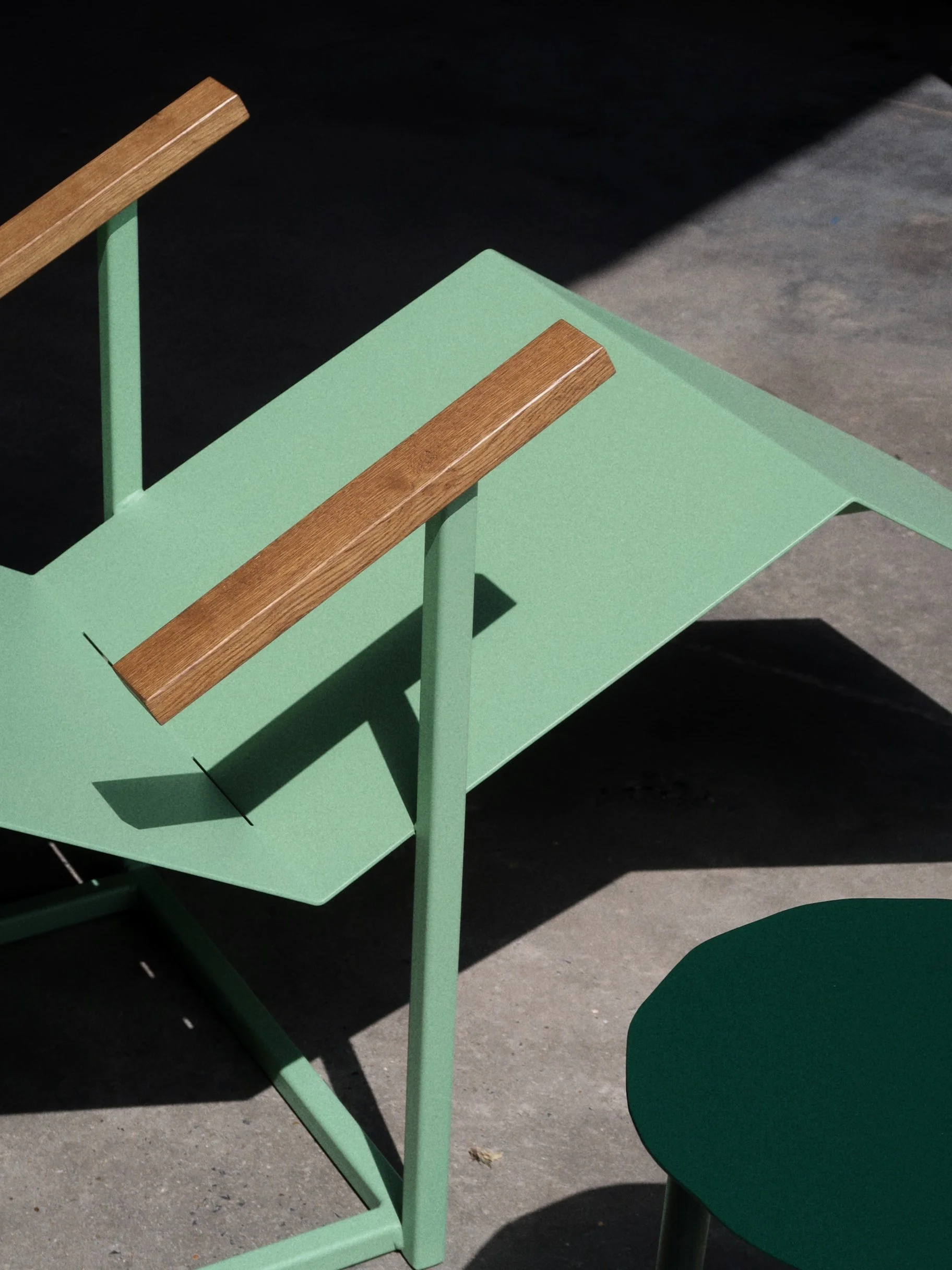 Gepoederlakt staal, eik.